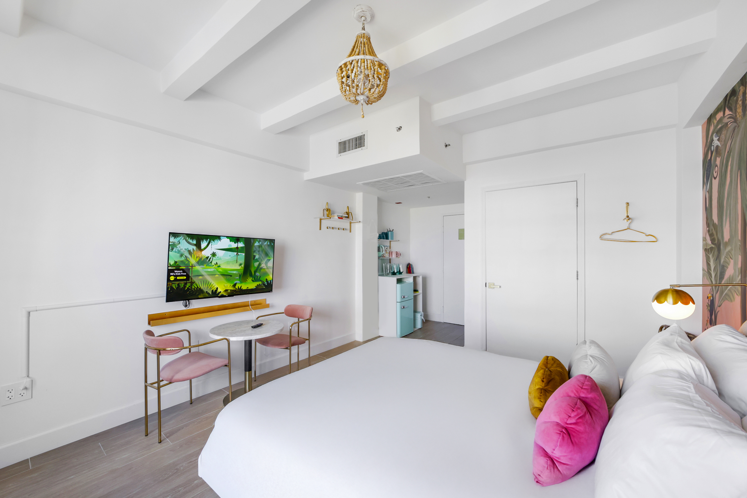 The Deluxe Rooms offer stunning views of the vibrant Miami skyline, balancing privacy with a deep sense of connection to the surroundings. Designed as a retreat for guests seeking both seclusion and immersion, each room features a Queen bed and a bathroom with a walk-in shower. Expansive windows flood the space with natural light, while refined furnishings and soft textures create an inviting, tranquil atmosphere.
