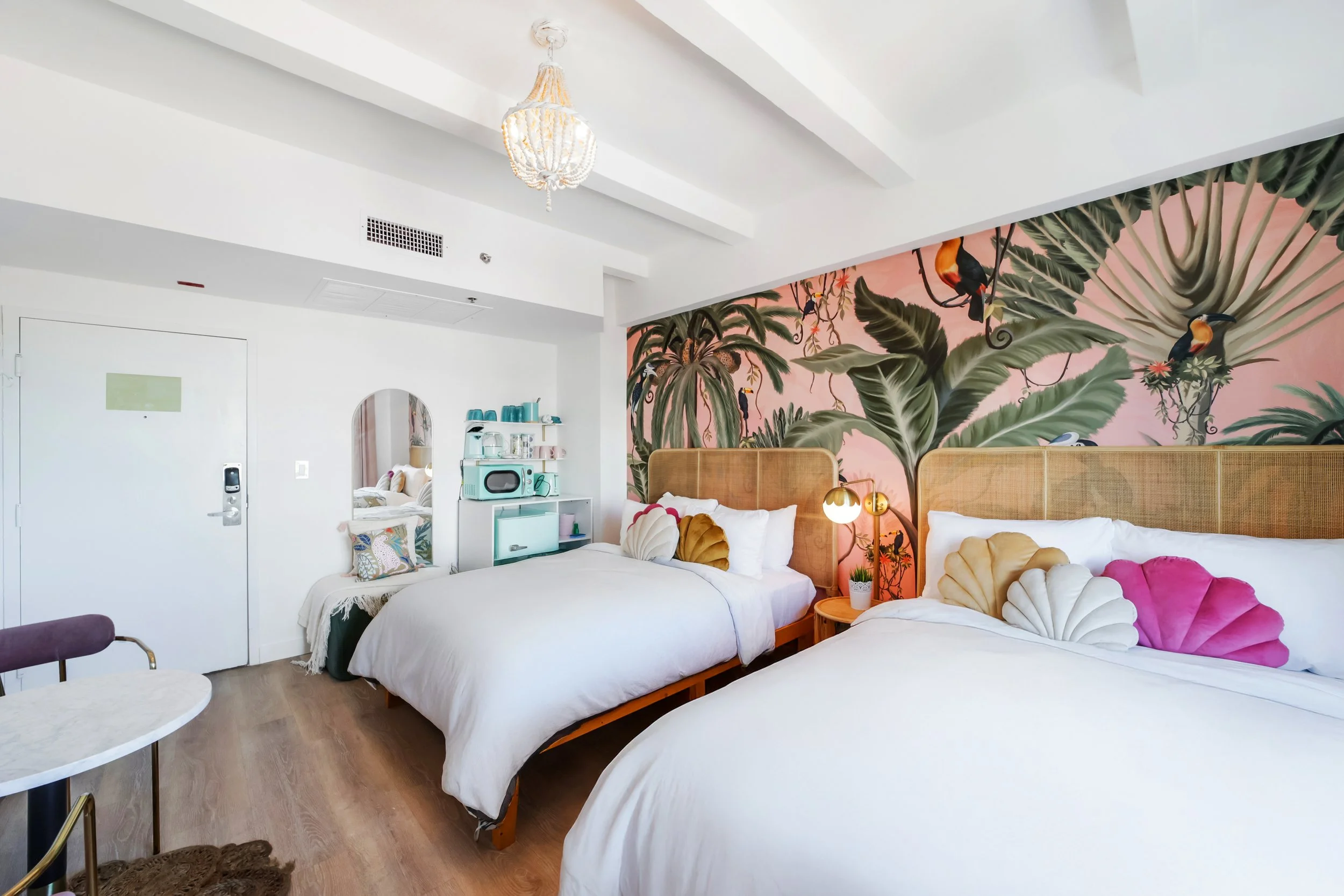Our rooms and bathrooms blend Art Deco charm with modern elegance, reflecting Le Particulier Miami’s nostalgic yet elevated style. Restored details nod to 1980s glamour with a contemporary touch.